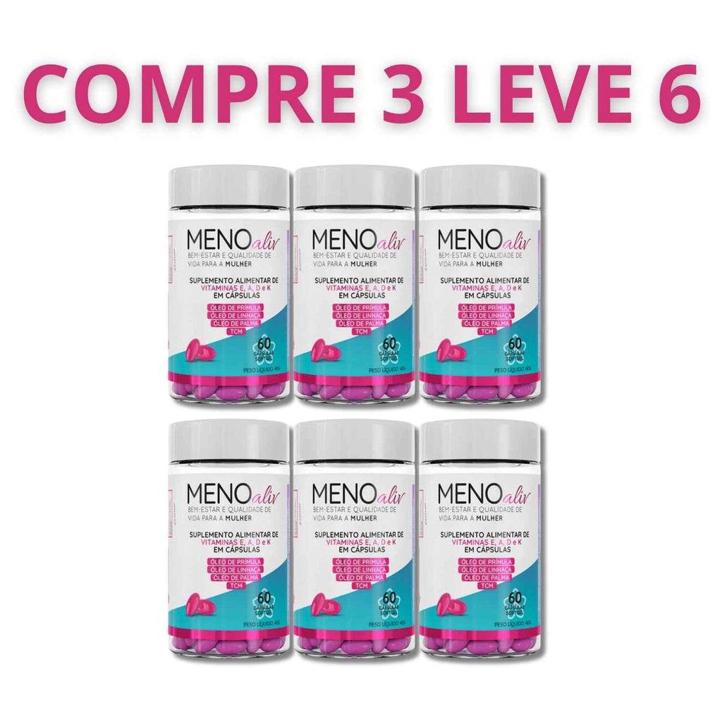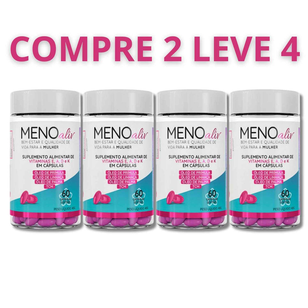 Meno Aliv foi desenvolvido para amenizar os principais sintomas da menopausa, como ondas de calor, suores noturnos, irritabilidade e alterações de humor, promovendo mais bem-estar e tranquilidade no seu dia a dia.